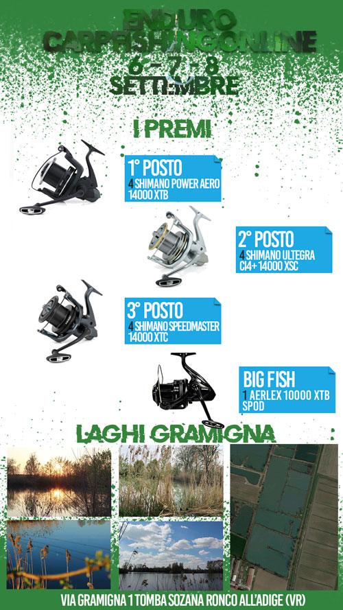 Enduro organized by Carpfishingonline.net on 6, 7 and 8 September 2019 at Gramigna lakes.